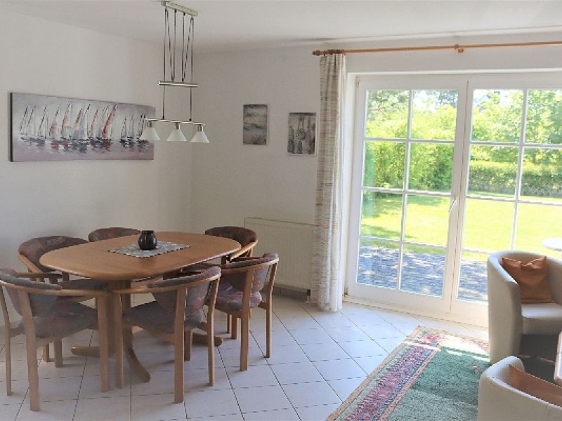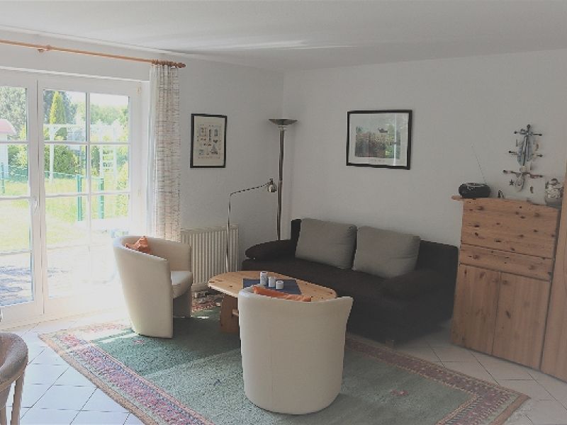- Wohnbereich mit kompletter Küchenzeile (Kühlschrank mit Eisfach, Herd mit Backröhre, Geschirrspüler, Mikrowelle, Kaffeemaschine, Wasserkocher etc.), Essplatz und Ausgang zur Terrasse und Garten